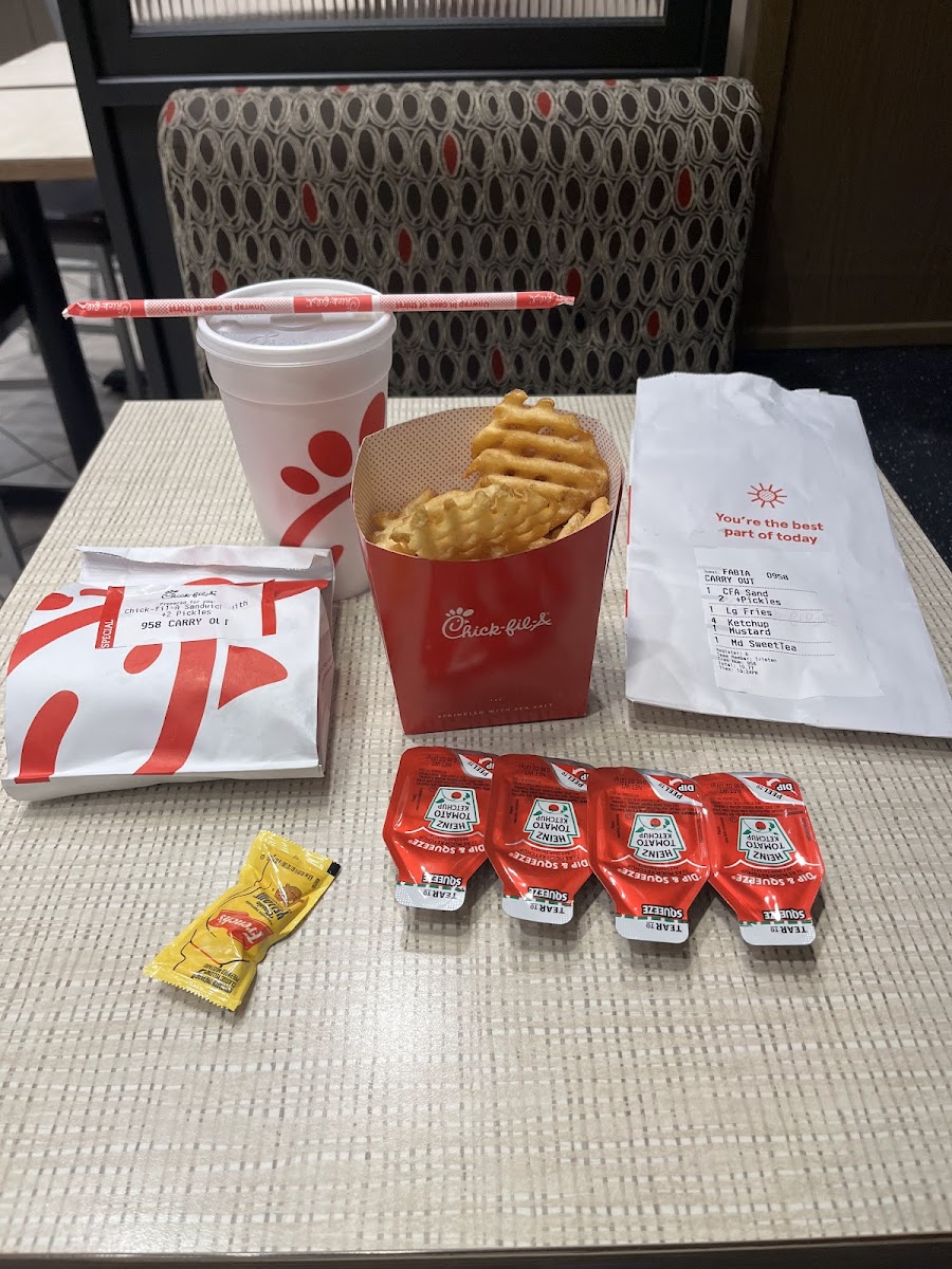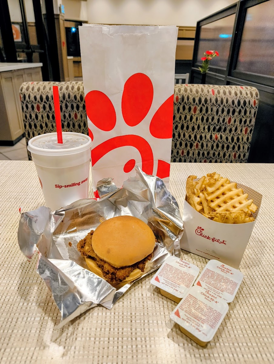 One afternoon stands out clearly. The lunch rush was in full swing, yet the line moved quickly and the staff stayed upbeat. I remember thinking this place had become my go-to lunch spot because the process is smooth from ordering to pickup. The menu is familiar but well-executed, focusing on chicken sandwiches, nuggets, salads, and breakfast options that work just as well for office workers as they do for tourists passing through. The spicy chicken sandwich, paired with waffle fries, hits that balance between comfort food and something that feels freshly made.